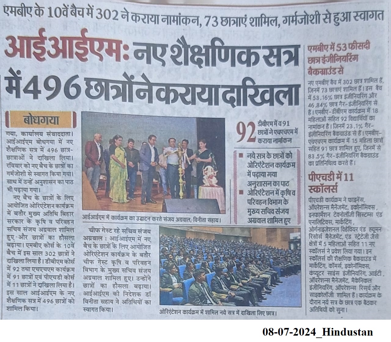 Orientation Programme, Orientation Programme-MBA, Orientation Programme MBA-DBM, Orientation Programme MBA-HHM, Orientation Programme PhD, Orientation Programme 2024, Novicia 3.0, Outreach Programme, Dr. Vinita S. Sahay- Director of IIM Bodh Gaya, Mr. Sanjay Kumar Agarwal, Mr. Kamal Nath, Mr. Vivek Jha, Mr. Gautam Kumar Mr. Navneet Nilendra, Prof. Pankaj Kumar, Dr. Neeta Nagar