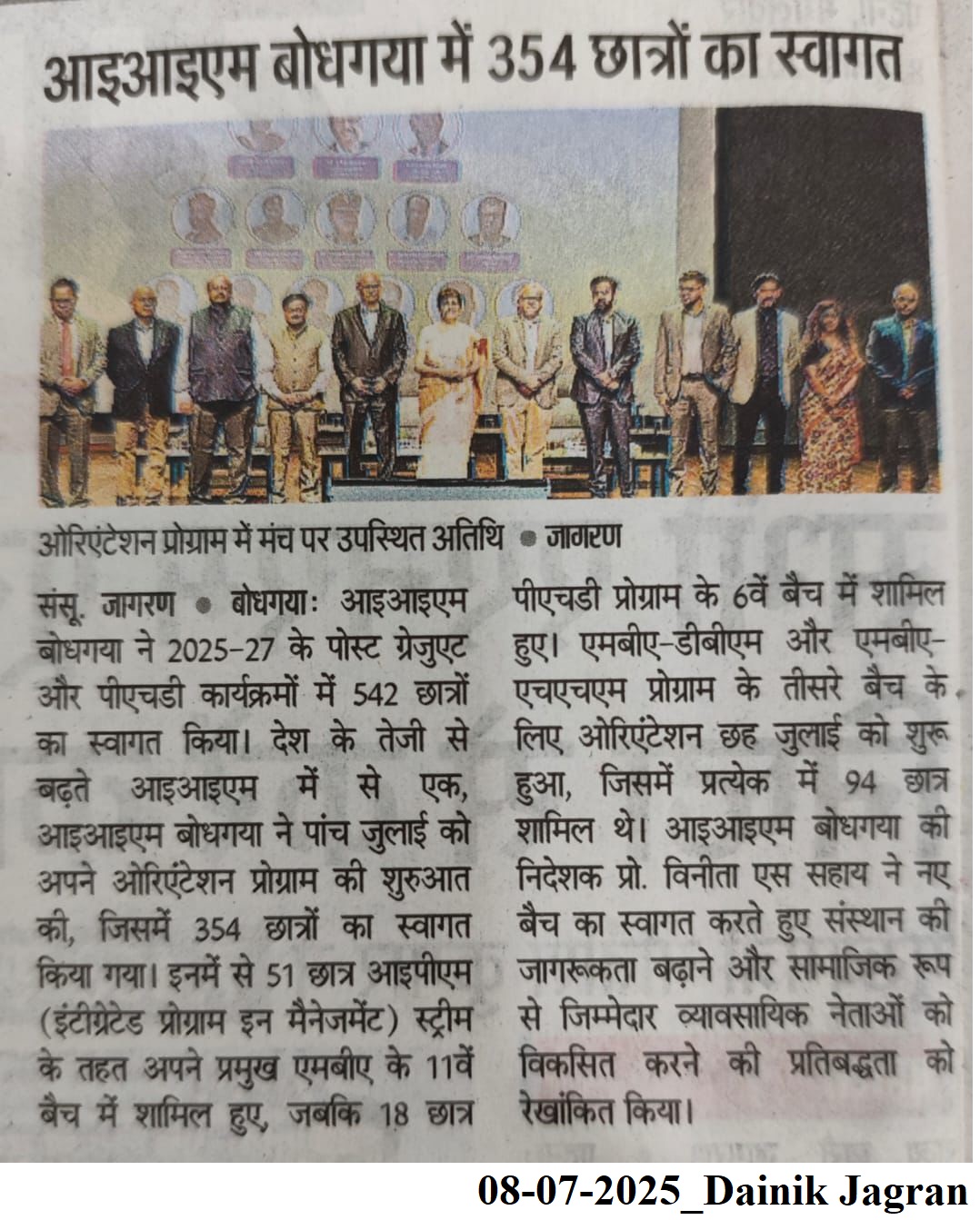 Indian Institute of Management Bodh Gaya, Dr. Vinita S. Sahay- Director of IIM Bodh Gaya, Management education—India, Orientation programme, Postgraduate students—Enrollment, Business schools—India, Academic year 2025–2027, Industry–academia collaboration, Government–academia collaboration, Professional education—India, Student induction programmes