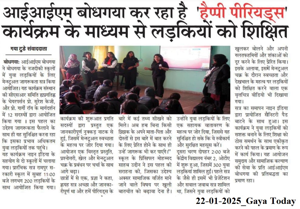आईआईएम बोधगया कर रहा है 'हैप्पी पीरियड्स' कार्यक्रम के माध्यम से लड़कियों को शिक्षित