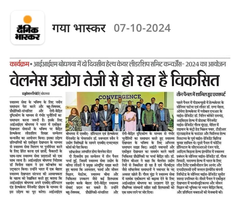 आईआईएम बोधगया में दो दिवसीय हेल्थ केयर लीडरशिप समिट कन्वर्जेस- 2024 का आयोजन : वेलनेस उद्योग तेजी से हो रहा है विकसित