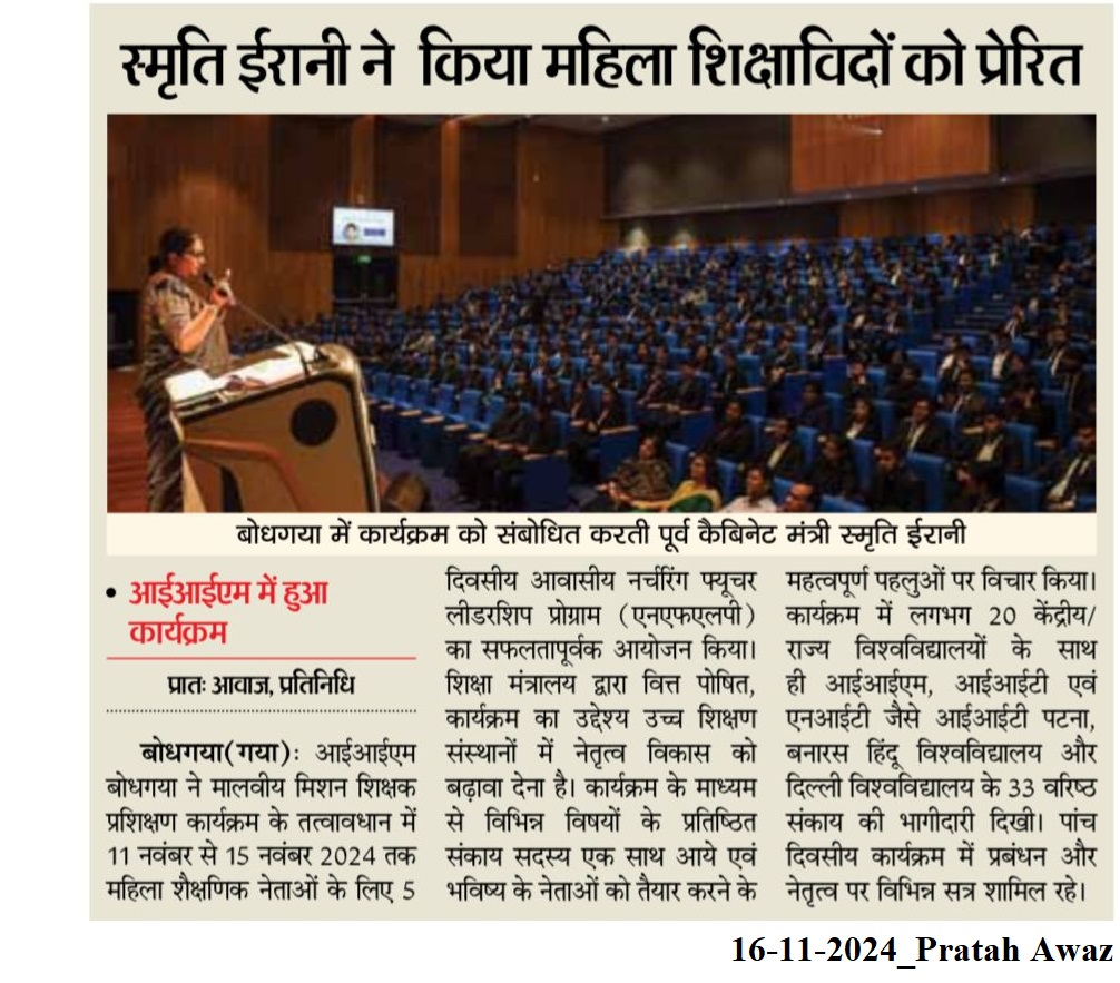Faculty Development Programme, Nurturing Future Leadership Programme (NFLP), Malaviya Mission Teacher Training Programme, Dr. Vinita S. Sahay- Director of IIM Bodh Gaya, Prof Indira Parikh- ex-Director of IIM-Ahmedabad and founding member of Flame University, Prof Sangita Srivastava- Vice-Chancellor- University of Allahabad, Prof Seema Sharma- IIT-Delhi, Smt. Smriti Irani- Former Cabinet Minister