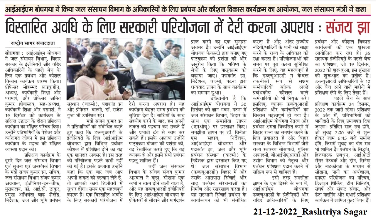 Management Development Program, MDP, Water Resources Department Bihar, Water and Land Management Institute (WALMI), Shri Sanjay Jha- Minister of Water Resources and Information and Public Relations-Govt. of Bihar