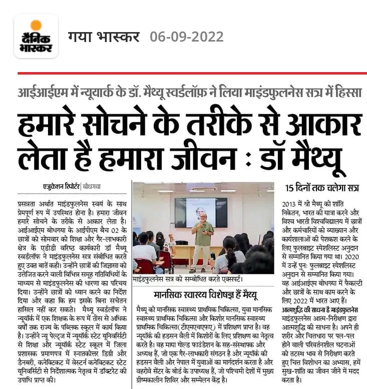 हमारे सोचने के तरीके से आकार लेता है हमारा जीवन : डॉ मैथ्यू