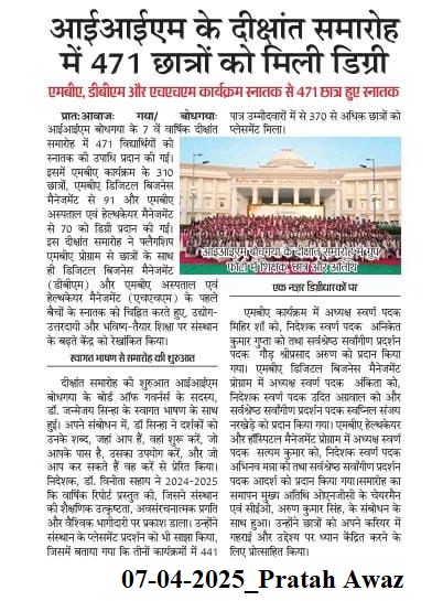 Convocation, 7th Annual Convocation, Convocation 2025, Dr. Vinita S. Sahay- Director of IIM Bodh Gaya, Dr. Janmejaya Sinha- Chairman of Boston Consulting Group (India), Mr. Arun Kumar Singh- Chairman and CEO of ONGC