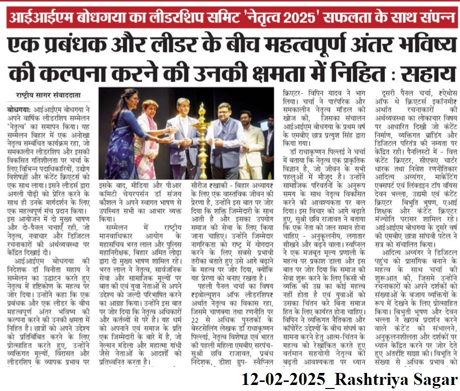 Netritva 2025, Annual Leadership Summit, Leadership Conclave, Dr. Vinita S. Sahay- Director of IIM Bodh Gaya, Dr. Sanjay Kaushal- IIM Bodh Gaya, Dr. Vishal Ashok Wankhede, Shri Bharat Lal- Secretary General of the National Human Rights Commission, Shri Amit Lodha- Inspector General of Police - Bihar, Shri Amit Lodha- Netflix, Evolution of Leadership, Ethos of the Creators’ Economy