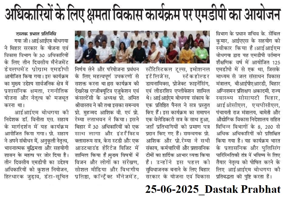 Management Development Program, MDP, MDP for Planning & Development Officers of Bihar, Dr. Vinita S. Sahay- Director of IIM Bodh Gaya, Dr. Amit Srivastava- IIM Bodh Gaya, Dr. Muhammed Ashiq V- IIM Bodh Gaya, Dr. Remya Lathabhavan- IIM Bodh Gaya, Mr. K. Senthil Kumar- IAS- Principal Secretary- Planning & Development Department- Govt. of Bihar