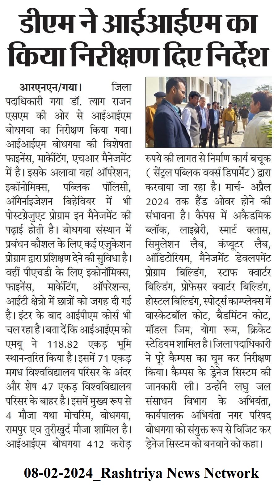 डीएम ने आईआईएम का किया निरीक्षण दिए निर्देश