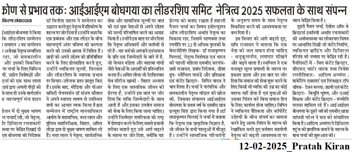 कोण से प्रभाव तक : आईआईएम बोधगया का लीडरशिप समिट नेतृत्व 2025 सफलता के साथ संपन्न