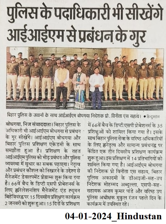 Management Development Program, MDP, Bihar Police Academy, DSP (Deputy Superintendent of Police), Departmental Efficiency, Dr. Vinita S. Sahay- Director of IIM Bodh Gaya, Dr. Amit Kumar Srivastava- IIM Bodh Gaya, Dr. Suresh K G- IIM Bodh Gaya