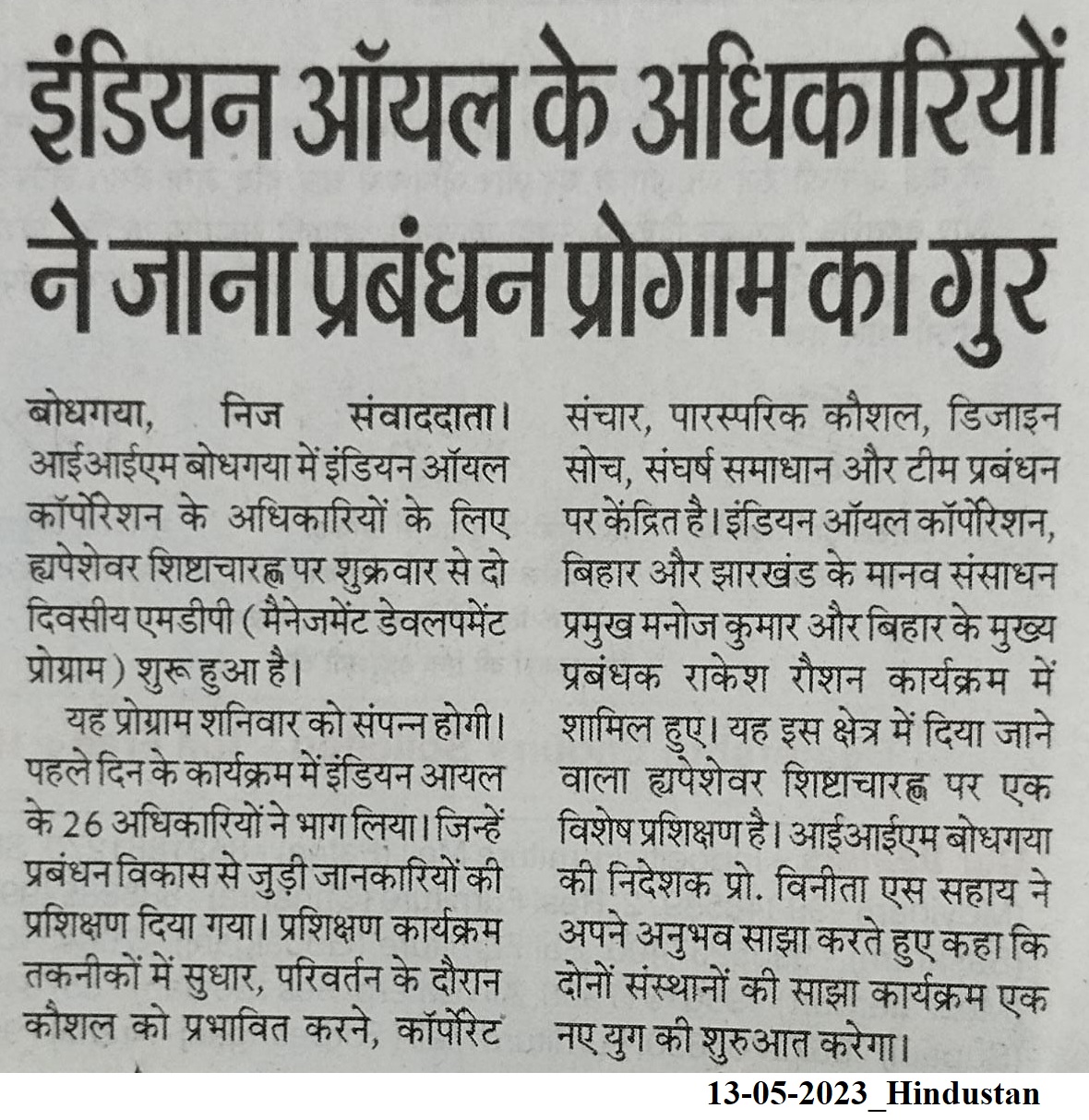 इंडियन ऑयल के अधिकारियों ने जाना प्रबंधन प्रोग्राम का गुर