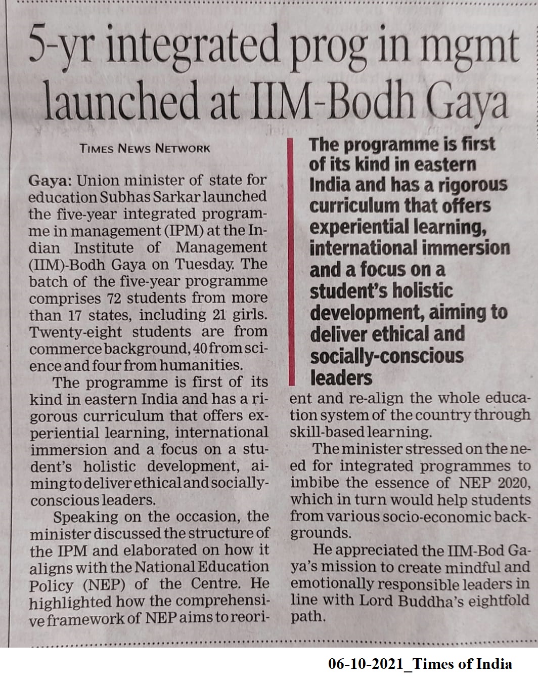 5-yr integrated prog in mgmt launched at IIM-Bodh Gaya