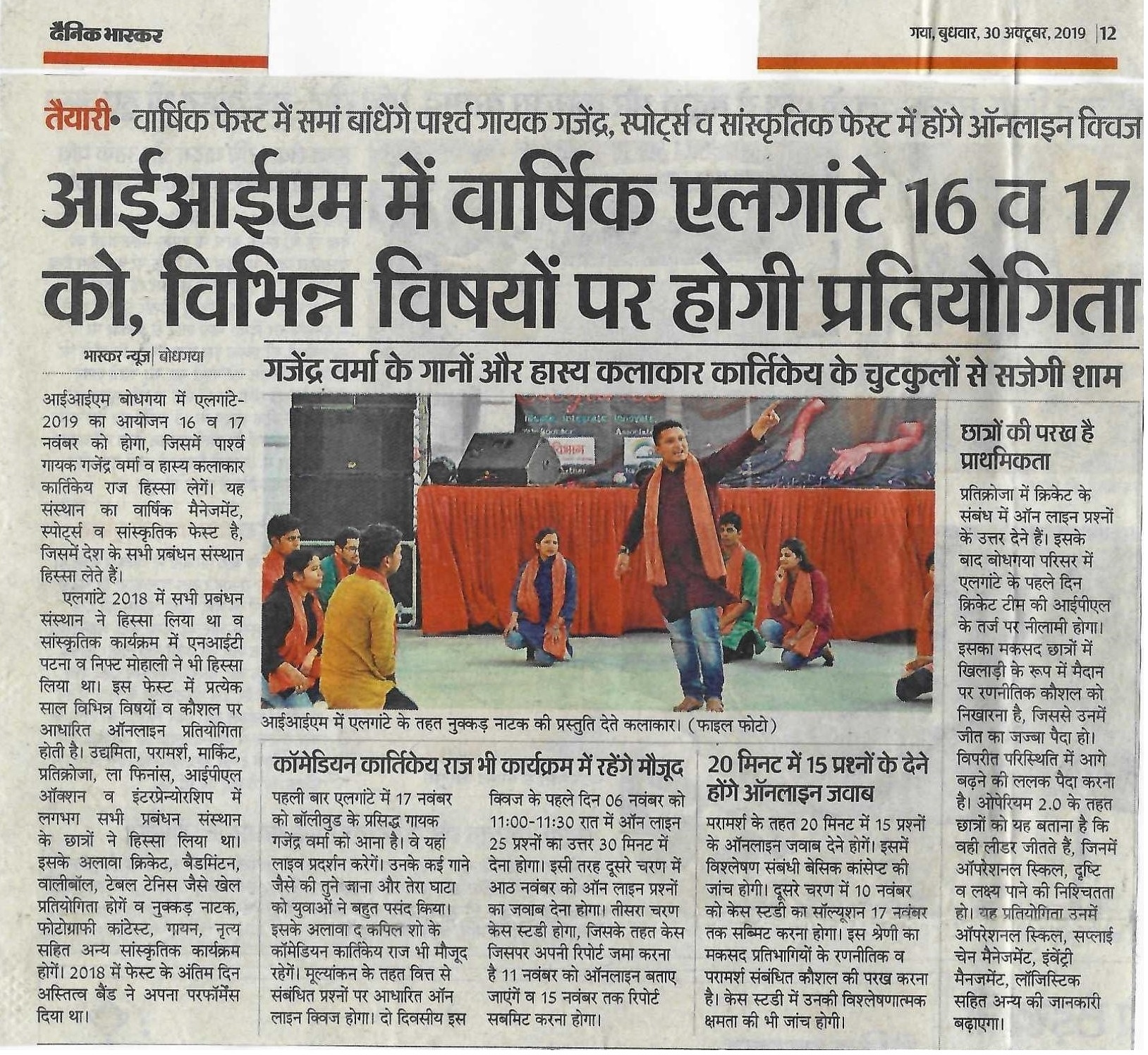 आईआईएम में वार्षिक एलिगांटे 16 व 17 को, विभिन्न विषयों पर होगी प्रतियोगिता