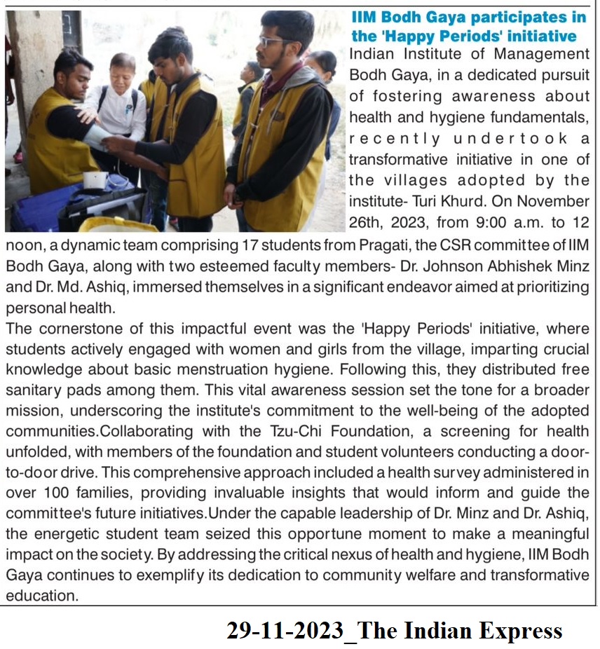 IIM Bodh Gaya participates in the 'Happy Periods' initiative
