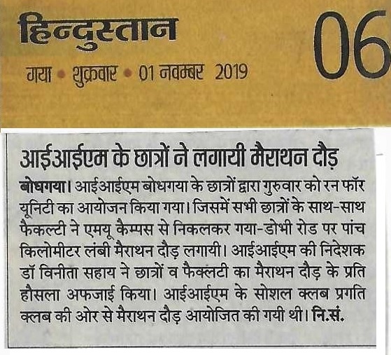 Pragati-CSR Committee, Marathon Race, Run For Unity, National Unity Day, Rashtriya Ekta Diwas Pledge, Pledge, Dr. Vinita S. Sahay- Director of IIM Bodh Gaya