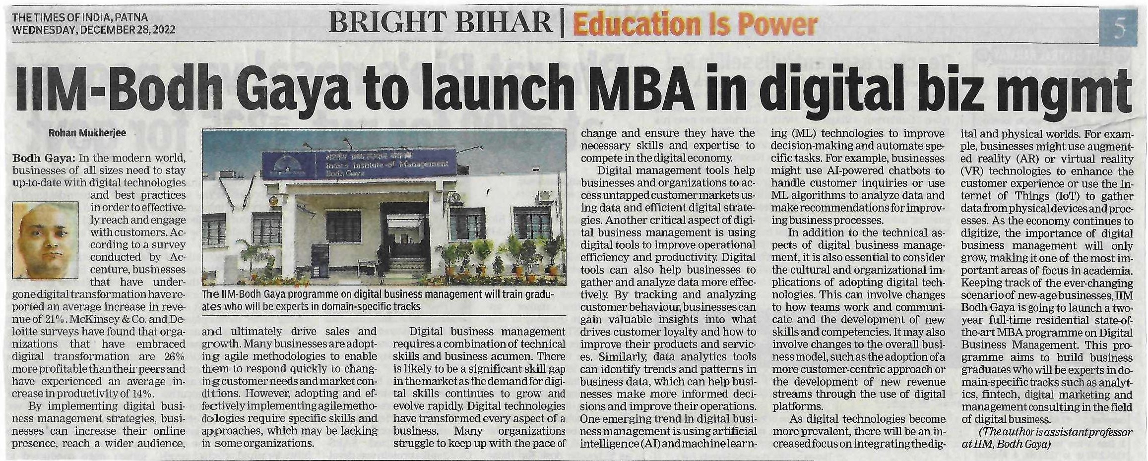 MBA-Digital Business Management, MBA-DBM, Artificial Intelligence (AI), Machine Learning (ML), Dr. Rohan Mukherjee- IIM Bodh Gaya
