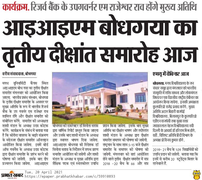आइआइएम बोधगया का तृतीय दीक्षांत समारोह आज : रिजर्व बैंक के उप गवर्नर एम राजेश्वर राव होंगे मुख्य अतिथि