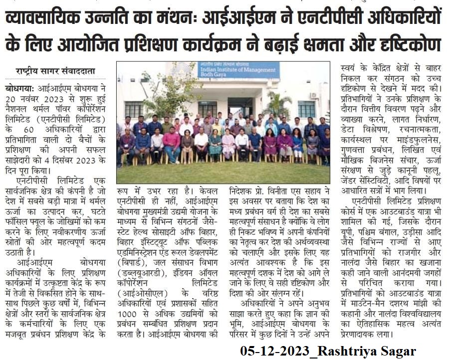 व्यावसायिक उन्नति का मंथन : आईआईएम ने एनटीपीसी अधिकारियों के लिए आयोजित प्रशिक्षण कार्यक्रम ने बढ़ाई क्षमता और दृष्टिकोण