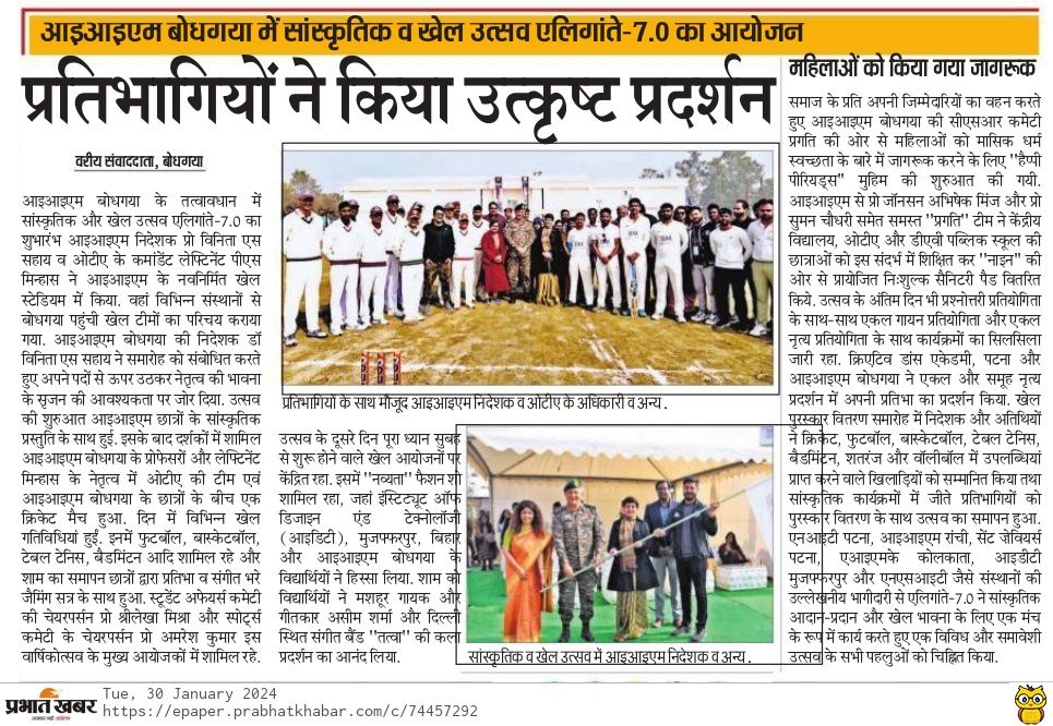 आइआइएम बोधगया में सांस्कृतिक व खेल उत्सव एलिगांते - 7.0 का आयोजन