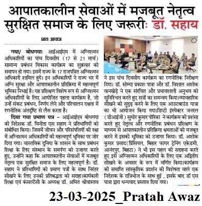 आपातकालीन सेवाओं में मजबूत नेतृत्व सुरक्षित समाज के लिए जरूरी : डॉ. सहाय