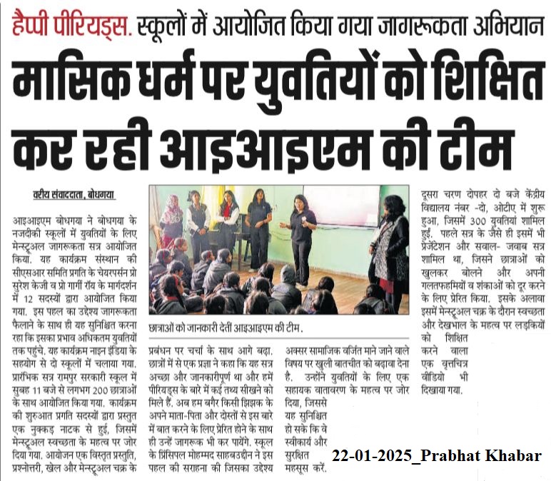 Pragati-CSR Committee, Happy Periods, Dr. Suresh K G-IIM Bodh Gaya Dr. Gargi Roy- IIM Bodh Gaya Niine India-Sanitary Napkin Brand in India
