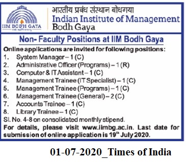 Advertisement for non-faculty positions at IIM Bodh Gaya