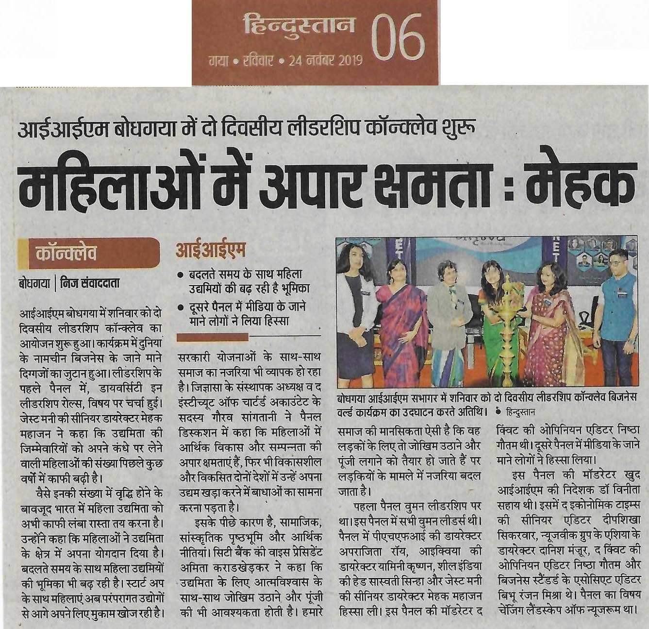 आईआईएम बोधगया में दो दिवसीय लीडरशिप कॉन्क्लेव शुरू : महिलाओं में उपार क्षमता : मेहक