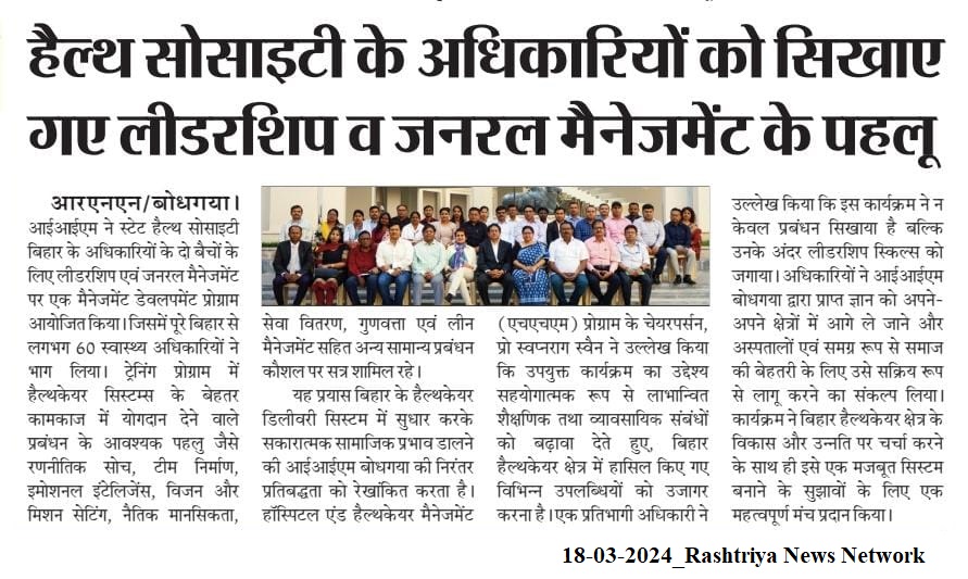 Management Development Program, MDP, State Health Society- Bihar, Leadership Skills, Leadership and General Management, Dr. Swapnarag Swain- IIM Bodh Gaya