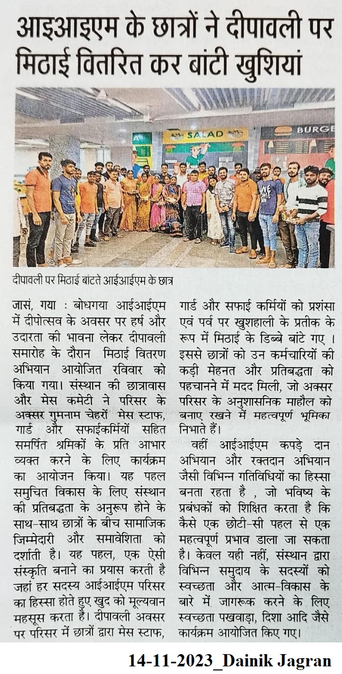 आइआइएम के छात्रों ने दीपावली पर मिठाई वितरित कर बांटी खुशियां