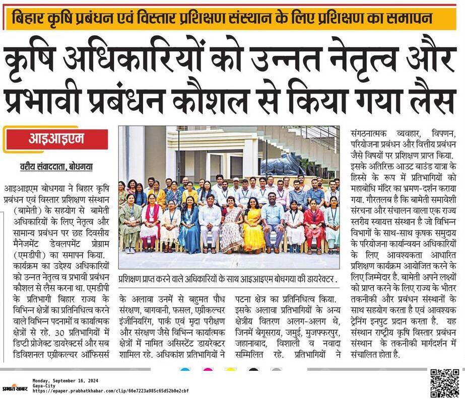 Management Development Program, MDP, MDP for Bihar Agriculture Management & Extension Training Institute (BAMETI) Officers, Bihar Agriculture Management and Extension Training Institute (BAMETI) Officers