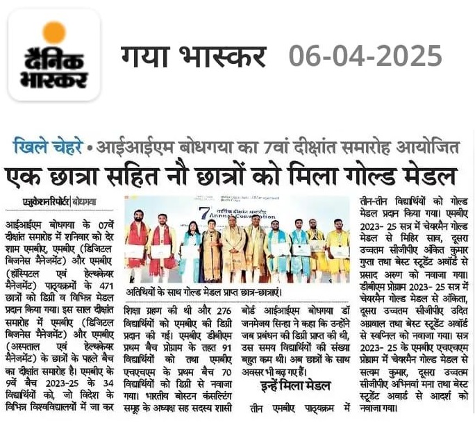 आईआईएम बोधगया का 7वां वार्षिक दीक्षांत समारोह आयोजित: एक छात्रा सहित नौ छात्रों को मिला गोल्ड मेडल