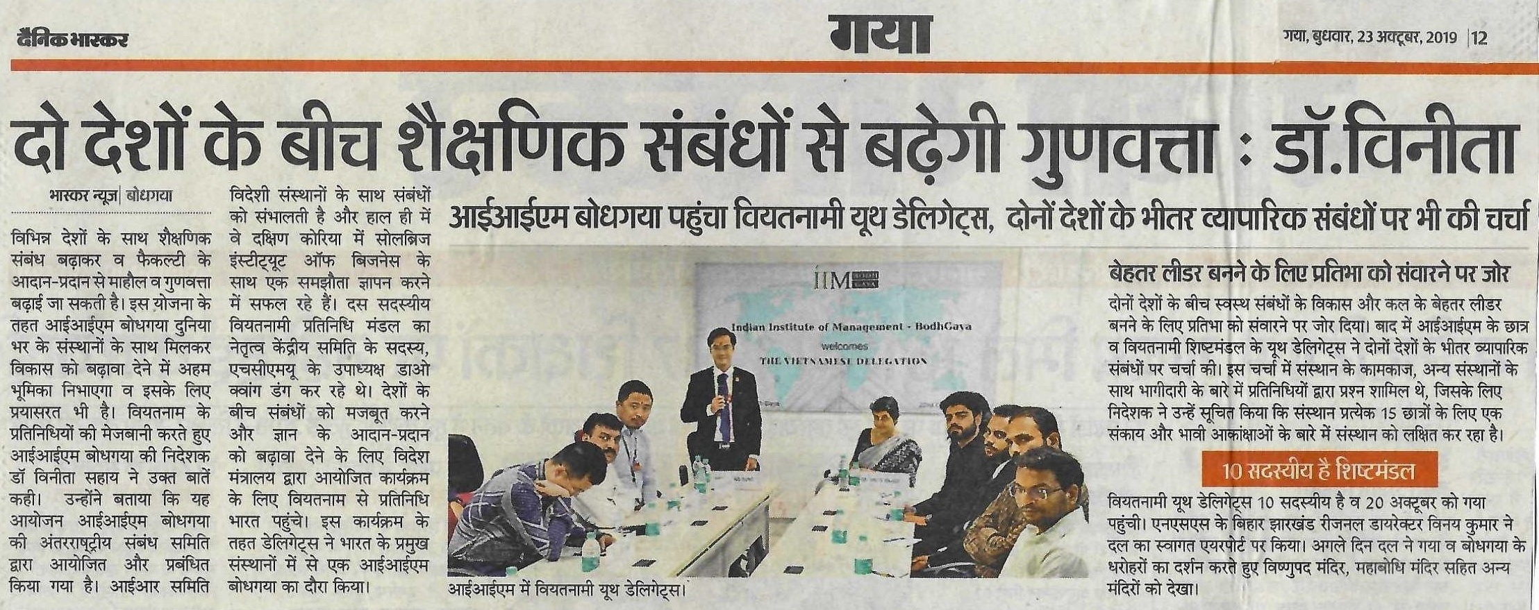 International Relations Committee, Vietnamese Delegation, Dr. Vinita S. Sahay- Director of IIM Bodh Gaya, Vietnam Youth Delegation, Mr. Dao Quang Dung