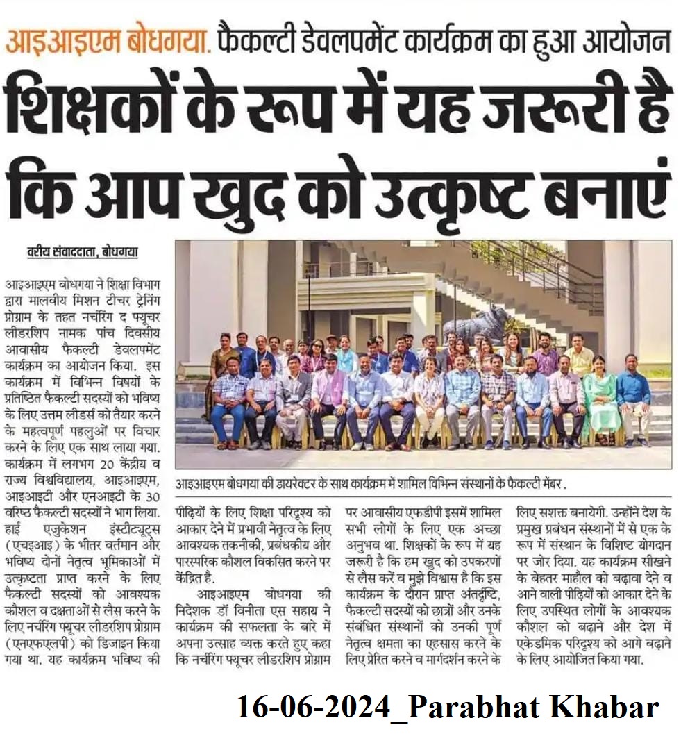 Faculty Development Programme, Nurturing Future Leadership Programme (NFLP), Malaviya Mission Teacher Training Programme, Dr. Vinita S. Sahay- Director of IIM Bodh Gaya