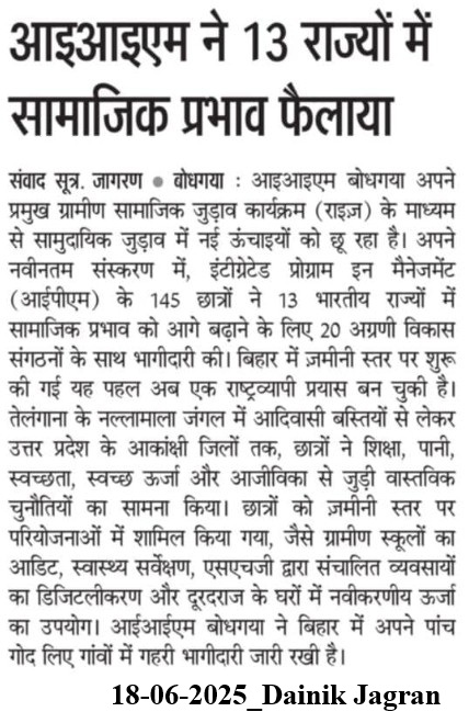 आइआइएम ने 13 राज्यों में सामाजिक प्रभाव फैलाया