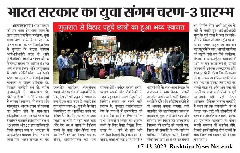 Yuva Sangam, Yuva Sangam-Phase 3, Tourism, Tradition, Development, People-to-People Connect, Technology, IIIT Surat