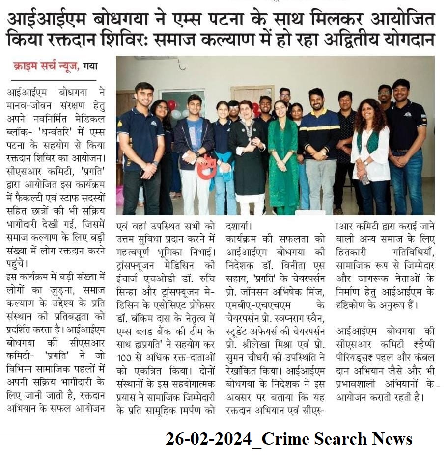 आईआईएम बोधगया ने एम्स पटना के साथ मिलकर आयोजित किया रक्तदान शिविर : समाज कल्याण में हो रहा अद्वितीय योगदान