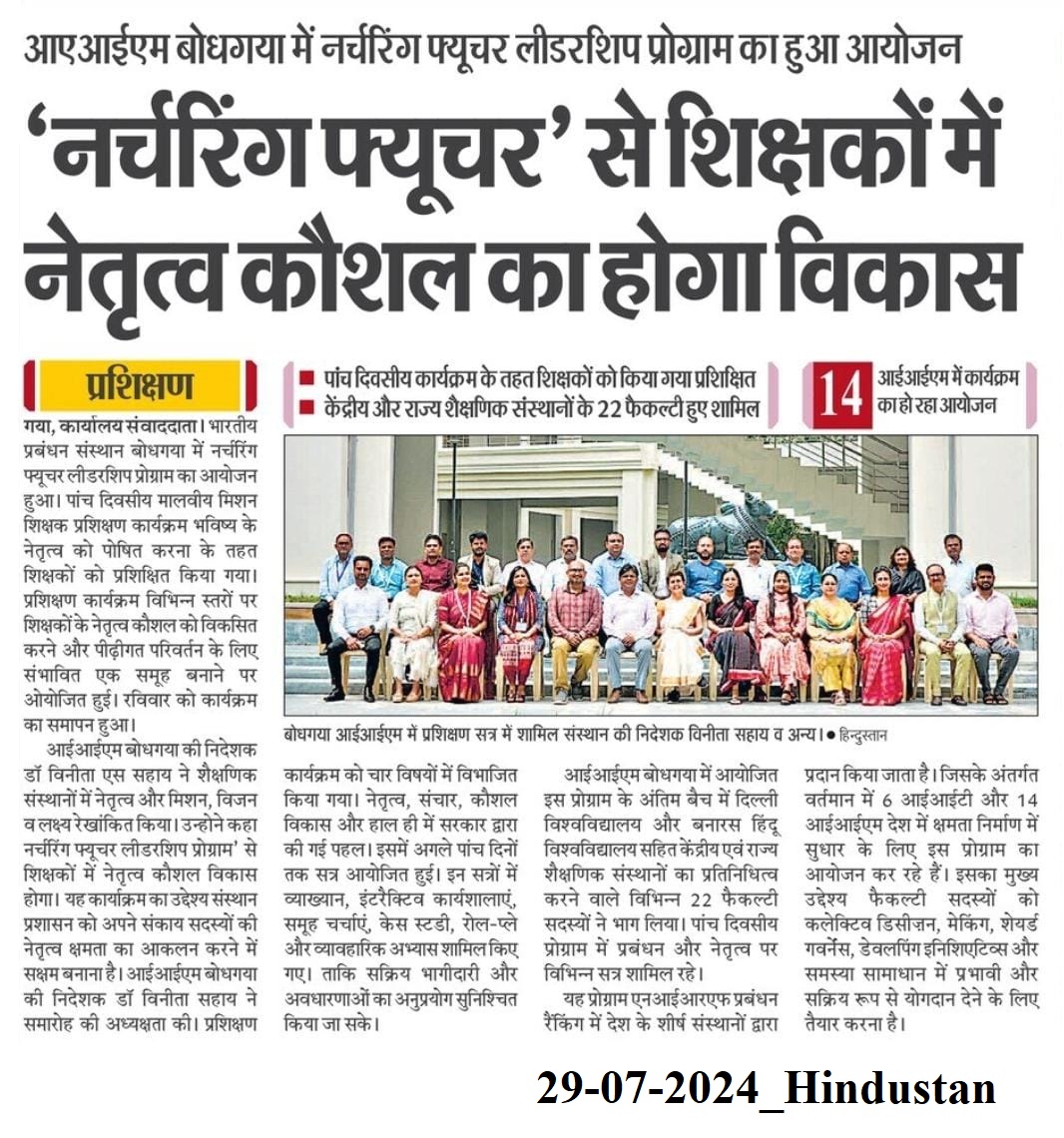 Faculty Development Programme, Faculty Leadership Development Program, Nurturing Future Leadership Programme (NFLP), Malaviya Mission Teacher Training Programme, Dr. Vinita S. Sahay- Director of IIM Bodh Gaya