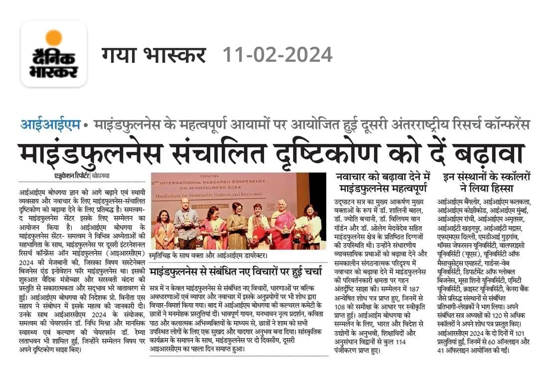 Conference, International Conference, International Research Conference on Mindfulness IRCM 2024, Dr. Vinita S. Sahay- Director of IIM Bodh Gaya, Dr. Nidhi Mishra- IIM Bodh Gaya, Dr. Remya Lathabhavan- IIM Bodh Gaya, Dr. Shalini Bahl, Dr. Jyoti Bachani, Dr. William Van Gordon, Dr. Oleg Medvedev, Mindfulness