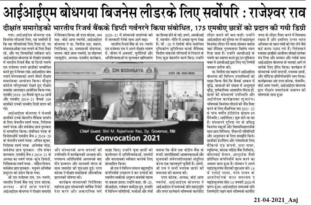 Convocation, 3rd Annual Convocation, Convocation 2021, Shri M Rajeshwar Rao- Deputy Governor of RBI-Chief Guest Dr. Vinita S. Sahay- Director of IIM Bodh Gaya