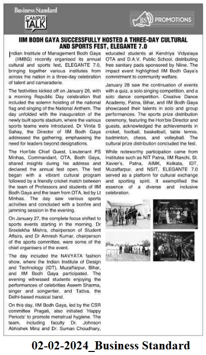 IIM Bodh Gaya successfully hosted the three day cultural and spors fest, Elegante 7.0