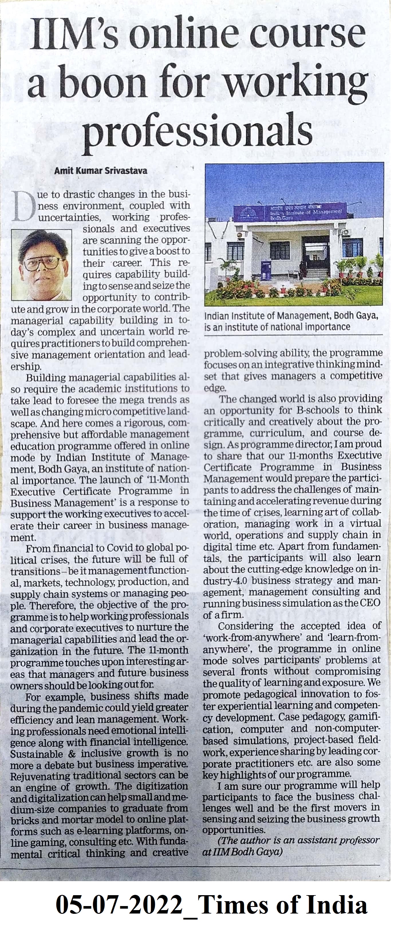 Executive Certificate Program, Business Management, Online Course, Dr. Amit Kumar Srivastava- IIM Bodh Gaya