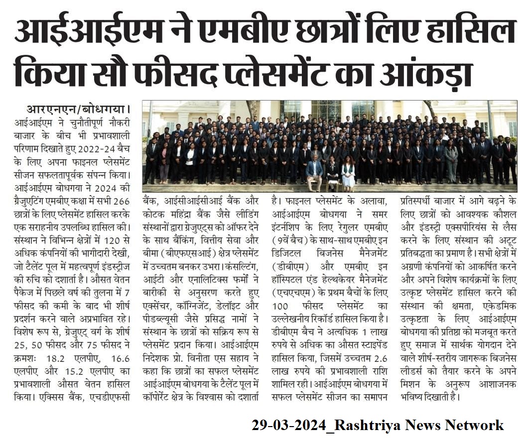 आईआईएम ने एमबीए छात्रों लिए हासिल किया सौ फीसद प्लेसमेंट का आंकड़ा