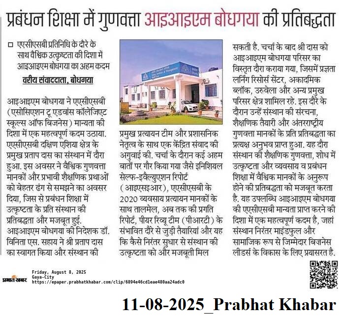 प्रबंधन शिक्षा में गुणवत्ता आईआईएम बोधगया की प्रतिबद्धता
