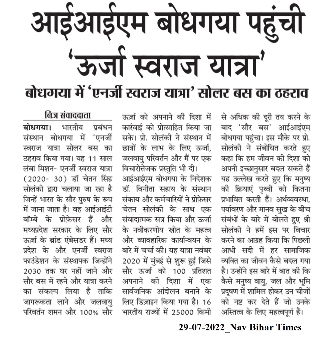 आईआईएम बोधगया पहुंची 'ऊर्जा स्वराज यात्रा'