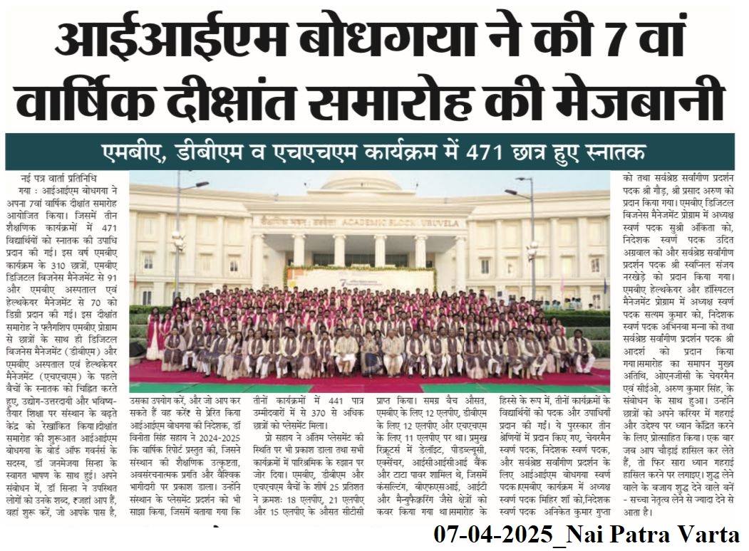 आईआईएम बोधगया ने की 7वां वार्षिक दीक्षांत समारोह की मेजबानी