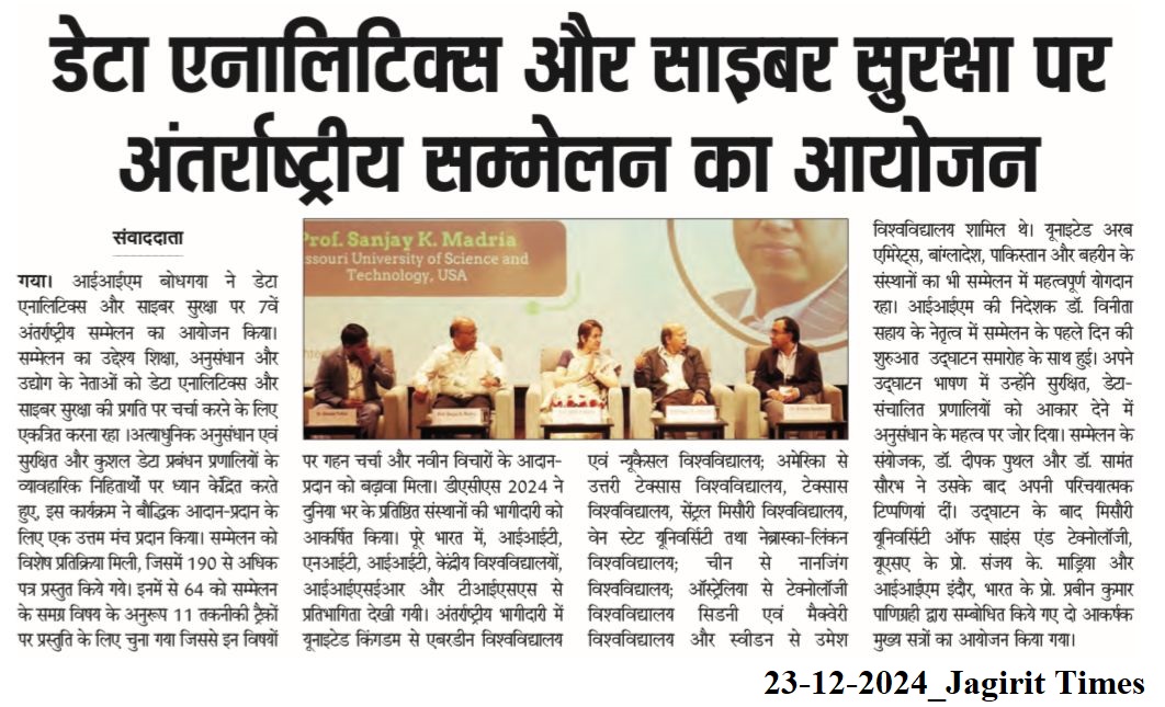 International Conference, International Conference on Data Analytics and Cyber Security, DACS 2024, Dr. Vinita S. Sahay- Director of IIM Bodh Gaya, Prof. Pradeep Sharma- University of Aberdeen- UK, Prof. Nitin Singh- IIM Ranchi, Prof. Panigrahi- IIM Indore, Dr. Madan Lal Yadav- IIM Bodh Gaya, Dr. Baudhayan Ganguly- IIM Bodh Gaya, Prof. Somnath Tripathi- IIT Patna, Prof. Prabhat Kumar- NIT Patna