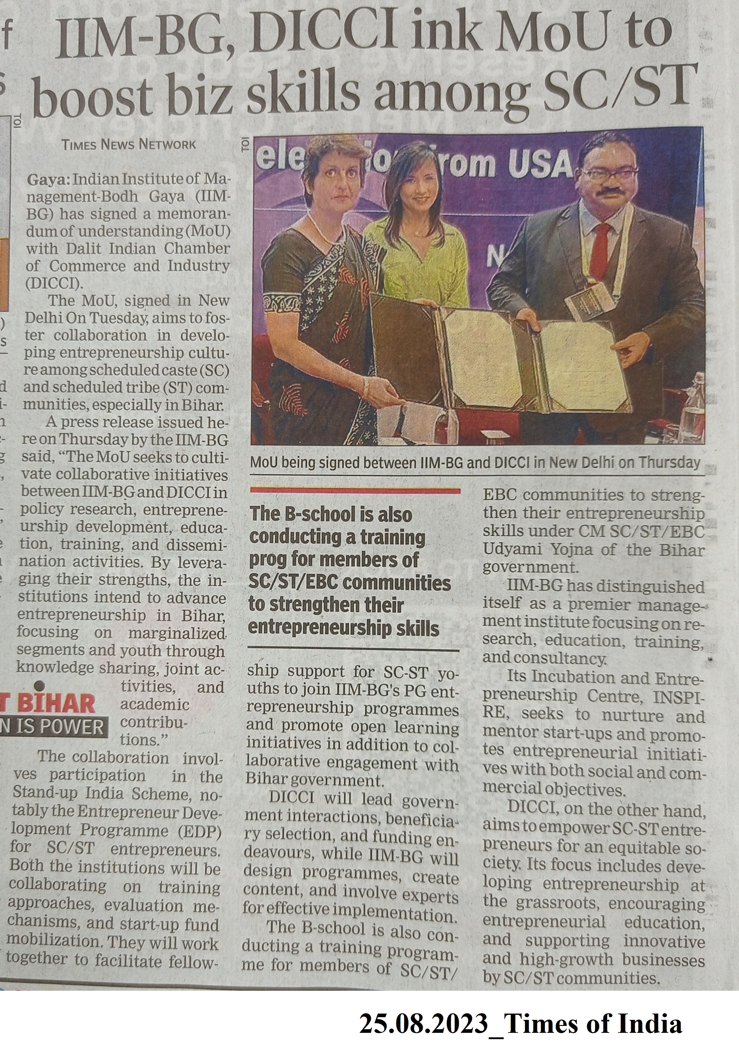 IIM-BG, DICCI ink MoU to boost biz skills among SC/ST