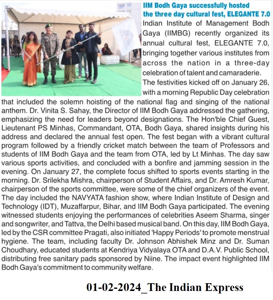 IIM Bodh Gaya successfully hosted the three day cultural fest, Elegante 7.0