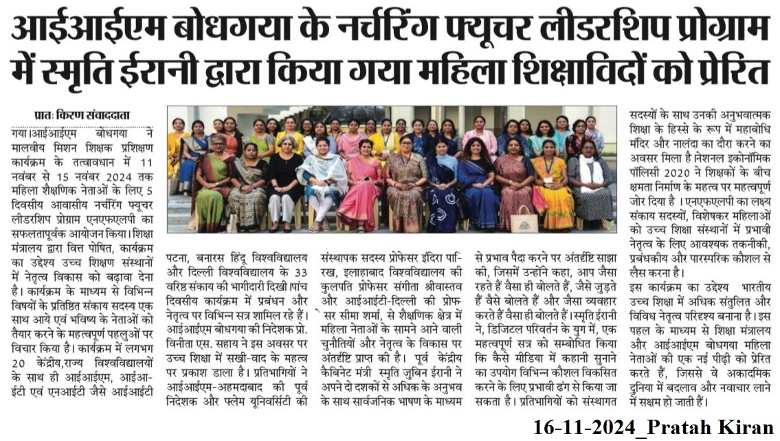 आईआईएम बोधगया के नर्चरिंग फ्यूचर लीडरशिप प्रोग्राम में स्मृति ईरानी द्वारा किया गया महिला शिक्षाविदों को प्रेरित
