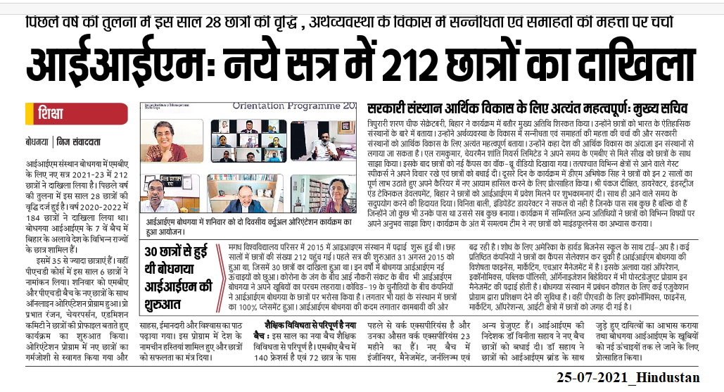 आईआईएम : नये सत्र में 212 छात्रों का दाखिला