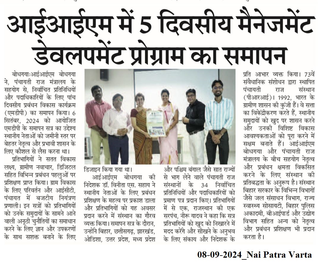 आईआईएम बोधगया में 5 दिवसीय मैनेजमेंट डेवलपमेंट प्रोग्राम का समापन